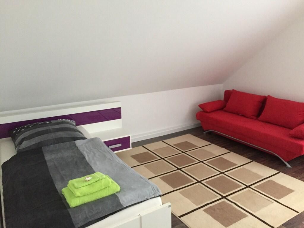 1 Kinderzimmer mit einem Bett und Schlafsofa für 2 Personen